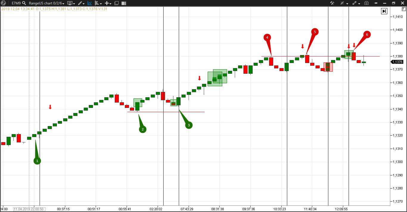 We improved this strategy in ATAS and chose the RangeUS 0/2/6 type of a chart, which is not connected with time and volume. If you want to learn in more detail how these charts are built and how useful they are for traders, please, read the article How to Search for Trades in the RangeUS chart.