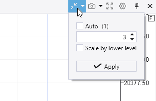 If the level of detail in the Fixed Range Volume Profile is too high, you can use the Scale tool (located on the right side of the top chart panel) to combine multiple price levels into one (in other words, to adjust the price step).