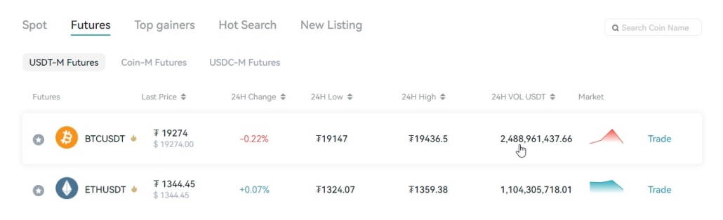 - hohe Liquidität. Beispielsweise betrug zum Zeitpunkt des Verfassens dieses Artikels das Volumen des BTCUSDT-Futures-Handels an der Bitget-Börse etwa 2,5 Milliarden US-Dollar pro Tag.