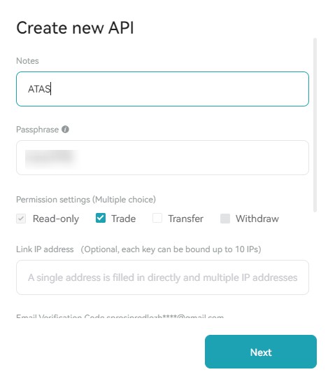 So stellen Sie über ATAS eine Verbindung zu Bitget her