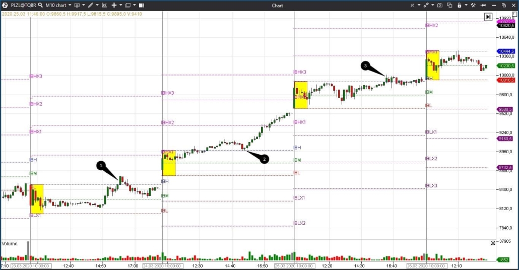 Der IB Indikator hilft Händlern, potenzielle Intraday Unterstützungs- und Widerstandsniveaus zu ermitteln. Hier können Sie mit einer Verlangsamung des Preises, der Platzierung von Limit Orders und einem geringen Risiko rechnen. Anhand der Breite des IB kann man davon ausgehen, welche Handelsstrategie effektiver ist und verschiedene Handelspläne für den Tag erstellen.Die Informationen in diesem Artikel sind nicht als Aufforderung zur Investition oder zum Kauf/Verkauf von Vermögenswerten an der Börse zu verstehen. Alle Situationen, die in diesem Artikel besprochen werden, dienen ausschließlich dem Zweck, sich mit der Funktionalität und den Vorteilen von ATAS vertraut zu machen.