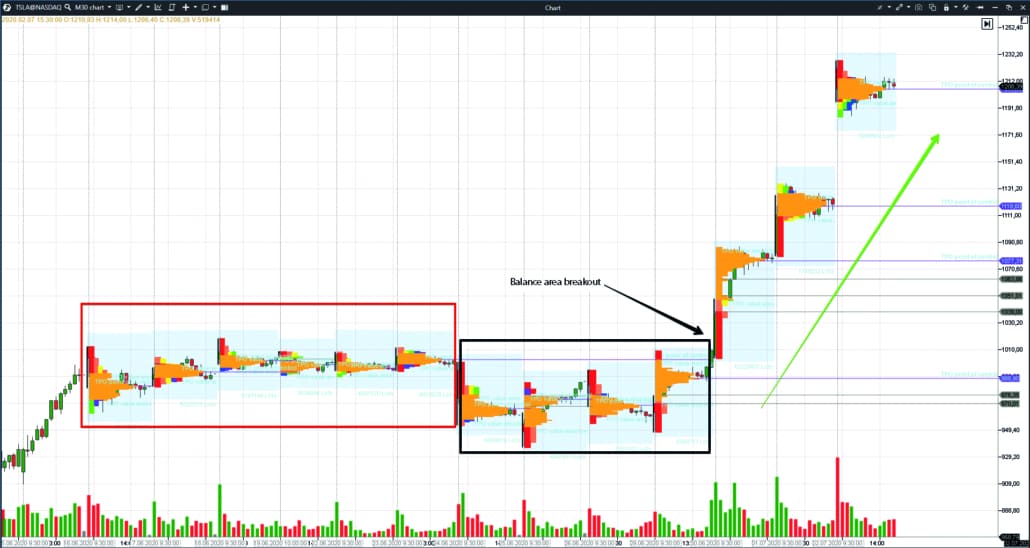 Die Grundidee ist, dass sich der Markt von Balance zur Balance bewegt. Der Markt bewegt sich direktional zwischen den Balancen. Beim Ausbalancieren ähnelt das Profil oft einer Glocke, und die Value Areas fallen zusammen oder überlappen sich stark. Während einer Trendbewegung dehnt sich das Profil aus und die Value Zonen bewegen sich über oder unter die Vorperioden. Wenn der Abstand zwischen den Balancen groß ist, hat sich der Trend gerade erst gebildet, und die Preise können sich noch viel weiter bewegen. Wenn der Abstand zwischen den Balancen klein ist, steht der aktuelle Trend kurz vor dem Abschluss und eine Umkehr ist möglich. Ein Marktprofil ist kein vollständiges Handelssystem. Es funktioniert nicht, mechanische Signale zum Öffnen und Schließen einer Position mit TPO oder einem Volumenprofil zu empfangen. Aber Sie können Ihr Verständnis der Marktsituation verbessern und deren zukünftige Entwicklung mit größerer Sicherheit vorhersagen. Bei der Analyse von TPO ist es sehr wichtig, das globale Bild zu berücksichtigen, bevor Sie eine Position für den Intraday-Handel auswählen. 5 wichtige Elemente in der TPO-Analyse Laut Jim Dalton sollten Händler bei der Analyse von Profilen und TPOs die folgenden 5 wichtigen Elemente berücksichtigen: