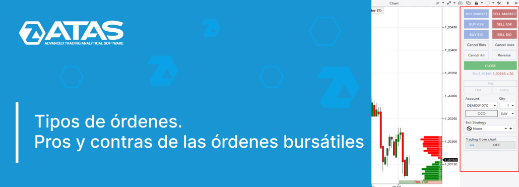 ¿Con qué órdenes operar? ¿Cuáles son mejores y cuáles peores? No hay una respuesta definitiva, usted debe elegir sus propias órdenes basándose en su estrategia, el contexto del mercado y otras circunstancias. Cada tipo de orden tiene su propio propósito, por lo que conocer las características de cada tipo le permitirá poner en práctica rápidamente sus ideas de trading de la mejor manera posible. Para familiarizarse con todas las posibilidades de trading que le ofrece la plataforma ATAS, le recomendamos que consulte el artículo “FAMILIARIZARSE CON ATAS. OPORTUNIDADES COMERCIALES”. Este artículo contiene un vídeo en el que se muestran las distintas formas de enviar órdenes. Si está estudiando los tipos de órdenes para entender la mecánica del proceso de trading bursátil, puede interesarle este artículo Teoría de subasta del mercado.La información presentada en este artículo no es un llamamiento a invertir o comprar/vender algún activo en la bolsa de valores. Todas las situaciones consideradas en el artículo están escritas para familiarizarse con la funcionalidad y las ventajas de la plataforma ATAS.