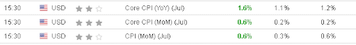 | Wednesday, August 19 09:00 | Great Britain. Consumer inflation in July. | GBP. Forecast – 0.4%, previous value – 0.6%. |