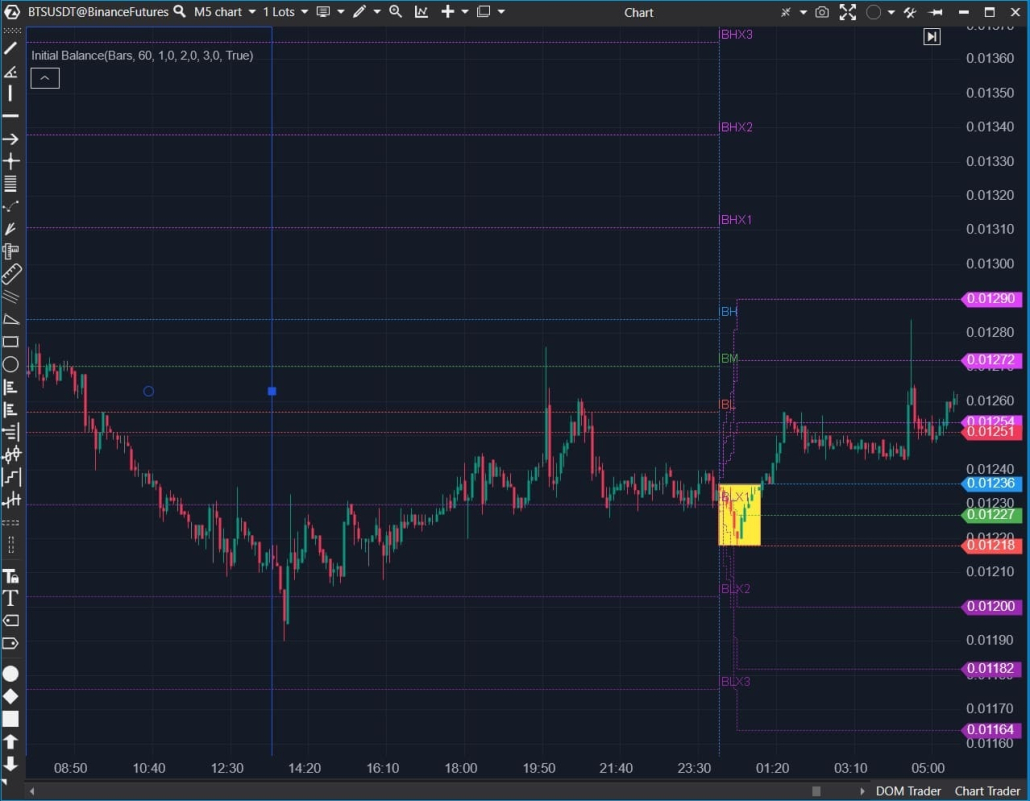 Initial Balance mostra l’intervallo di attività durante il periodo iniziale della sessione selezionata. Aiuta a capire dove si forma l’equilibrio di base tra domanda e offerta all’inizio delle negoziazioni.