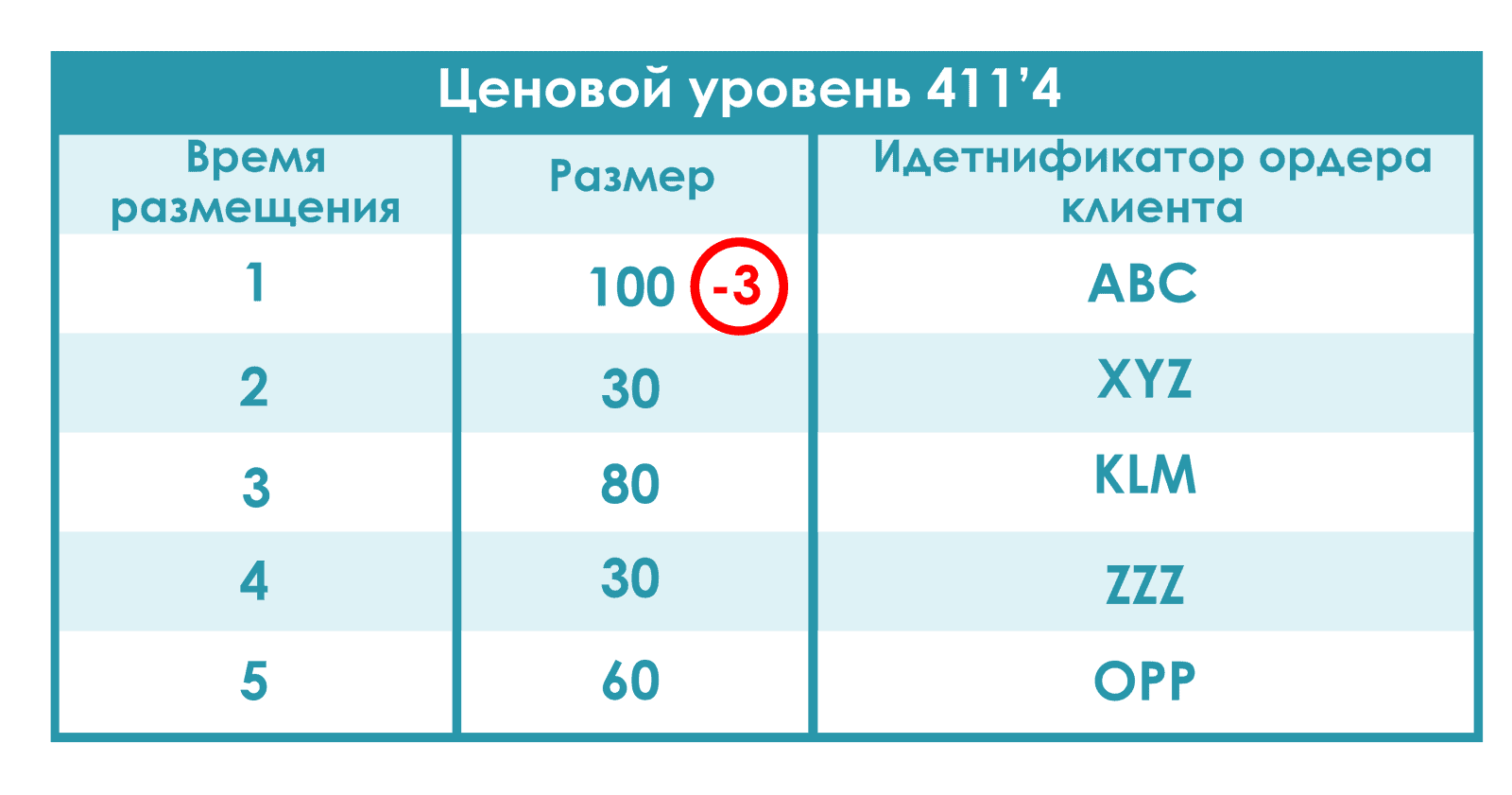Как видим, на уровне лучшей цены 411’4 расположились 5 участников (см. рис. ниже).