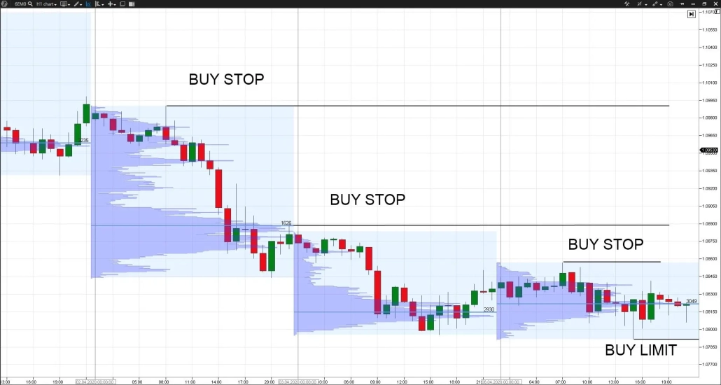 Для начала, определите, в каком направлении перемещается объём. Это можно сделать воспользовавшись индикатором Market Profile.
