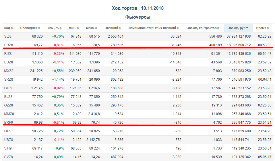- Московская биржа MOEX. На срочном рынке торгуется как фьючерс на нефть Brent, так и Crude Sweet WTI (начиная с весны 2018). Но Brent несравнимо популярней, как уже упоминалось в начале статьи.
