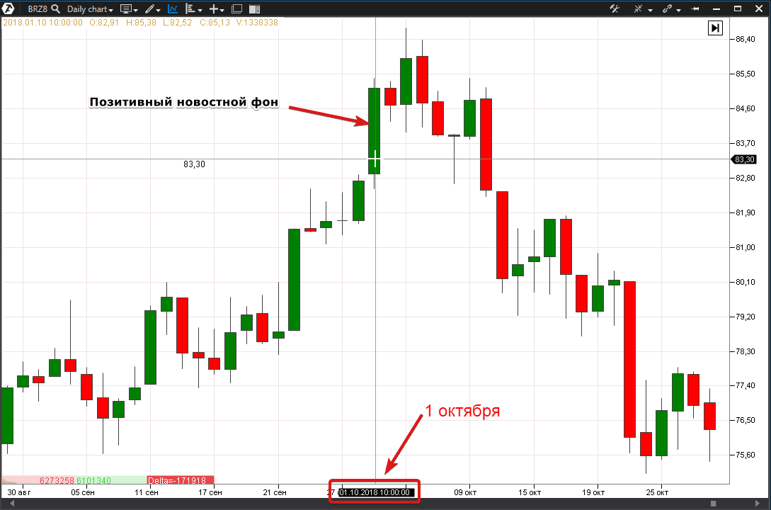 - Нескучный информационный фон. Ежедневно цену нефтяного фьючерса толкают в обе стороны новости со всего мира. О фундаментальном анализе фьючерсов на нефть — чуть ниже.