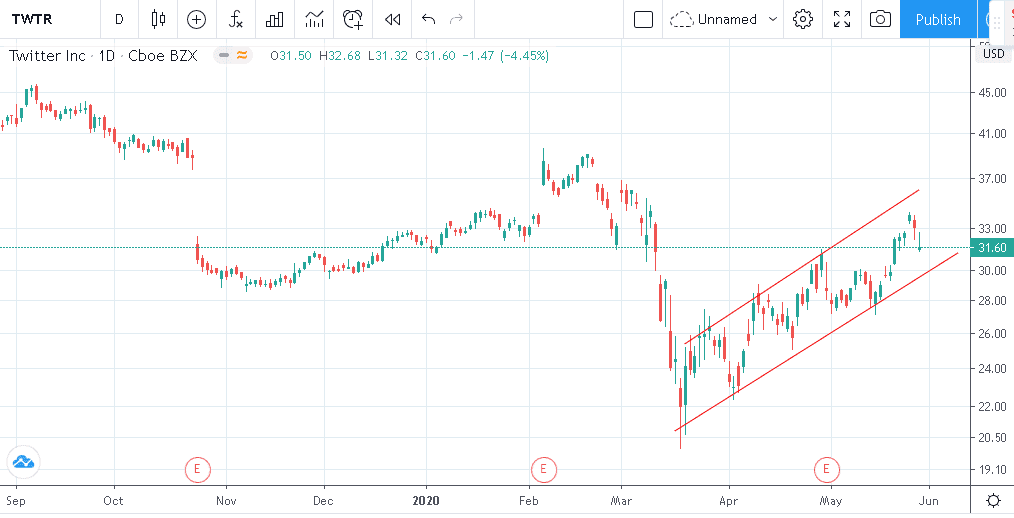 Неожиданными жертвами нападок Трампа стали и социальные сети. Гнев главы Белого дома вызвала реакция Twitter на один из его многочисленных постов. Президент написал, что голосование по почте на предстоящих выборах будет способствовать искажению результатов. В Twitter почему-то решили проверить этот пост и пометили его как фейк. Реакция Трампа была эмоциональной. Он пообещал либо запретить соцсети, либо ввести контроль за их работой. В небе запахло жареным, акции Twitter скорректировались, но пока в рамках восходящего канала.