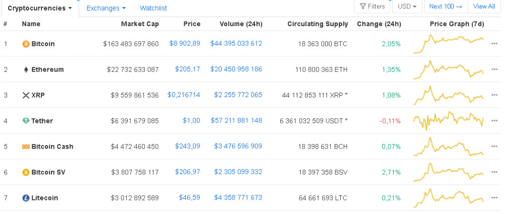 Вторая по капитализация криптовалюта (Эфир) оценивается в 8 раз дешевле, а третья (XRP) — более чем в 17 раз.