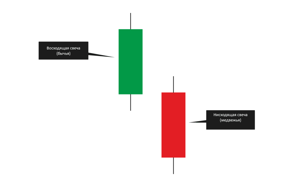 На рисунке представлен пример восходящей и нисходящей свечи.