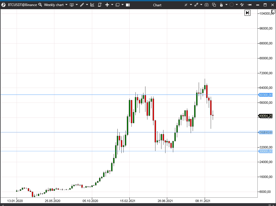 Несмотря на жесткую коррекцию в конце 2021, в экспертной среде пока превалируют бычьи ожидания на 2022 год. Так, Bloomberg Intelligence прогнозирует, что курс биткоина в 2022 году вырастет до $100.000. Вообще эту круглую цифру довольно часто можно увидеть в прогнозах аналитиков.