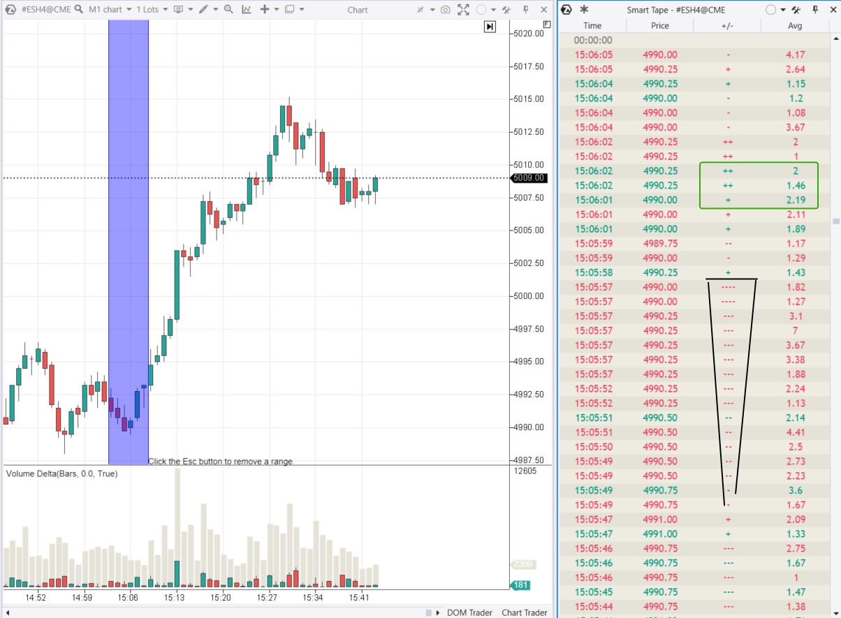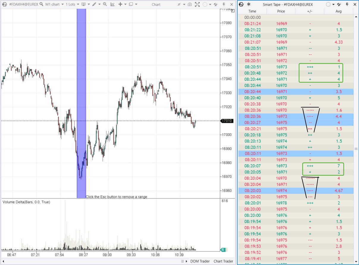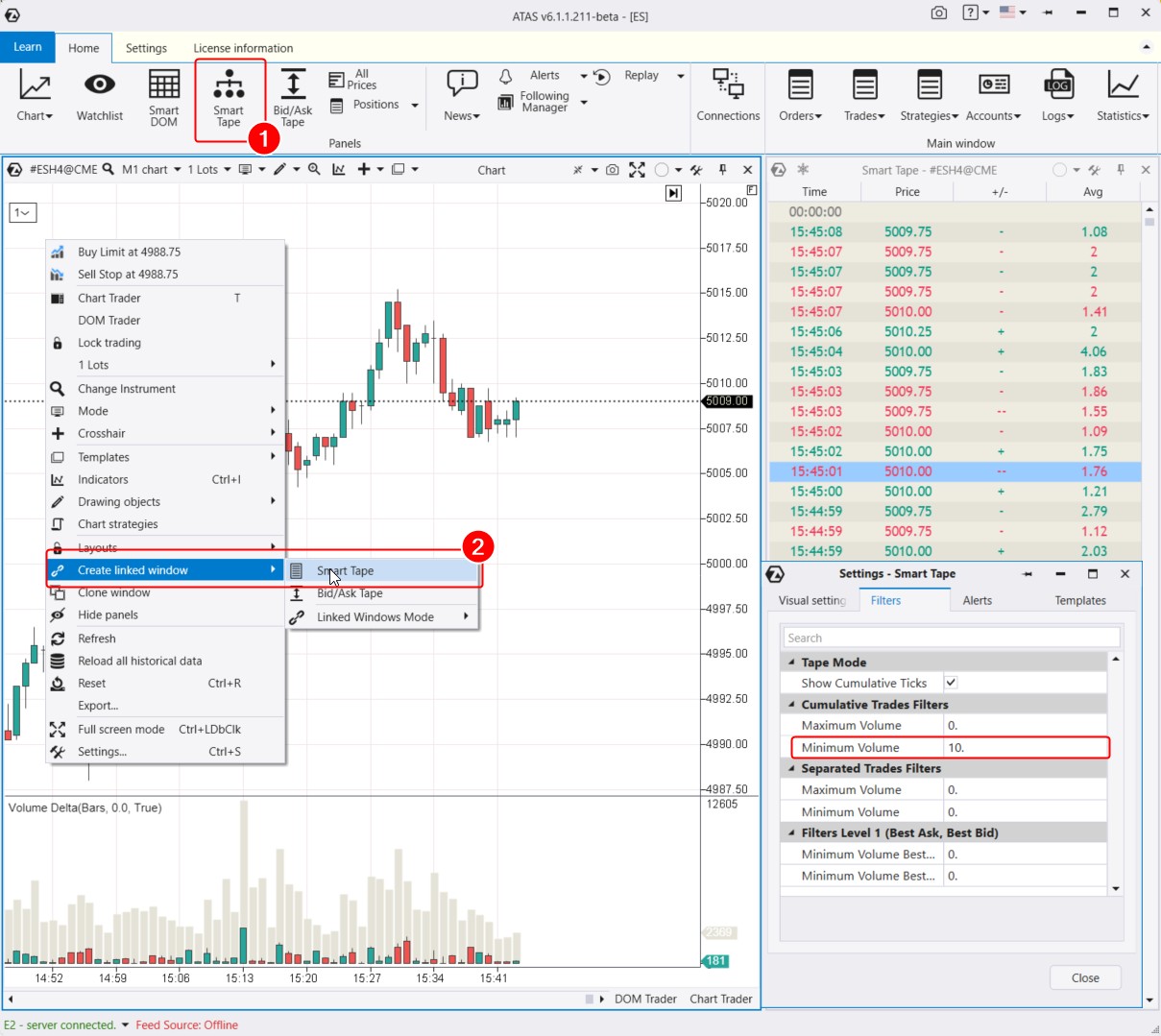 Лента принтов Smart Tape — инструмент платформы ATAS для анализа только что совершенных сделок. Он обладает мощным функционалом, который включает индикатор скорости, фильтры и другие полезные штуки.
