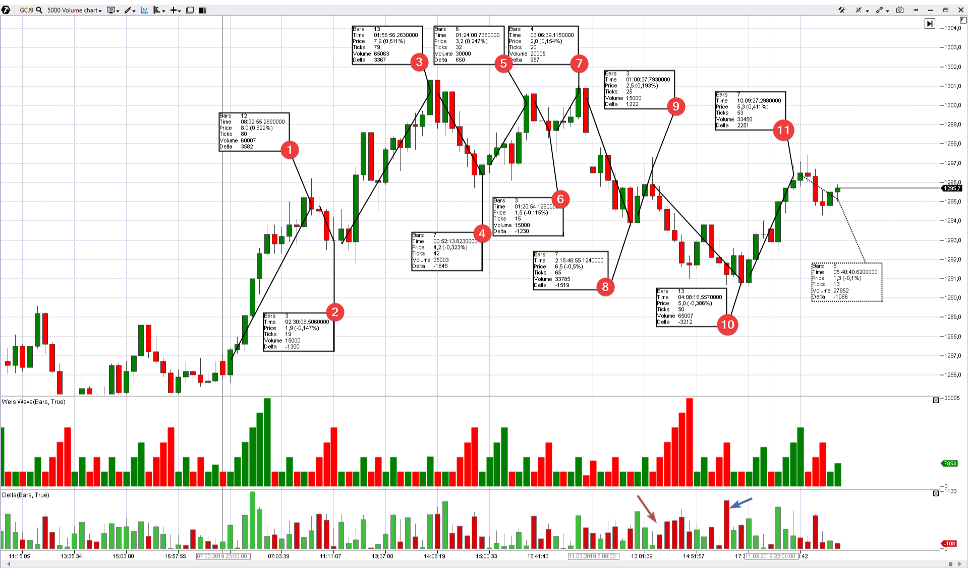 Анализ “Волны Вайса” с помощью линейки и индикатора дельты