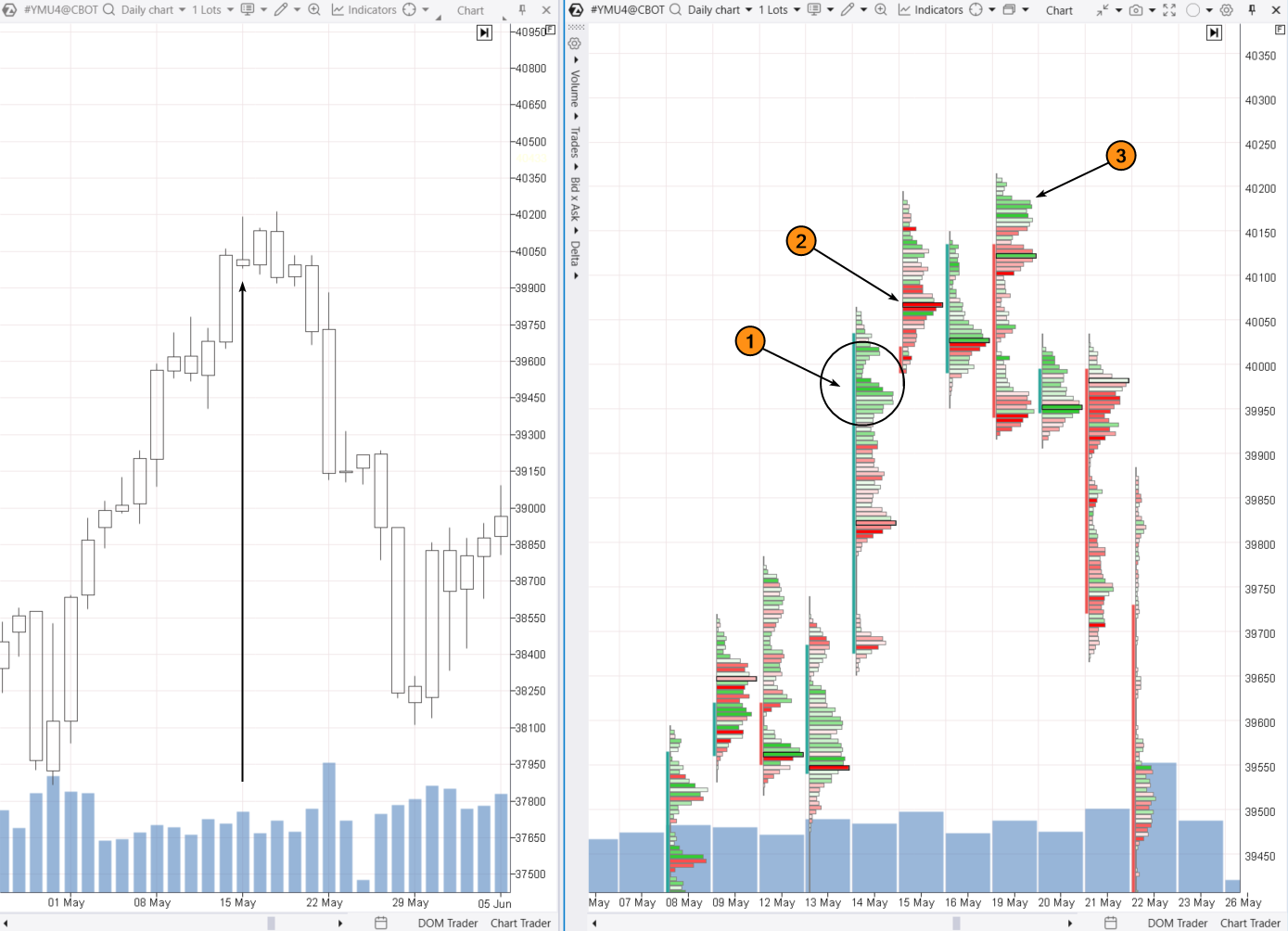 The most effective way to enhance your strategy when trading this pattern is to use a cluster chart (or footprint). We will dive into how to use it with examples later on.